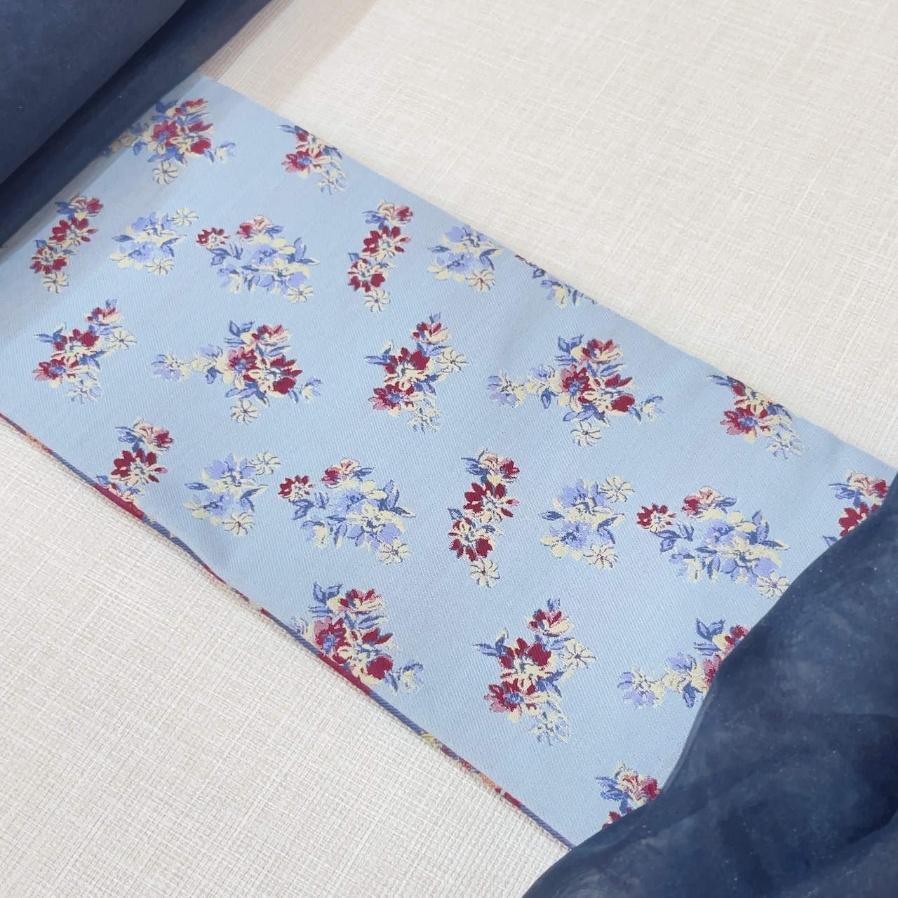 【楽帯】ブルーワンピフラワー リボン部分2枚仕立