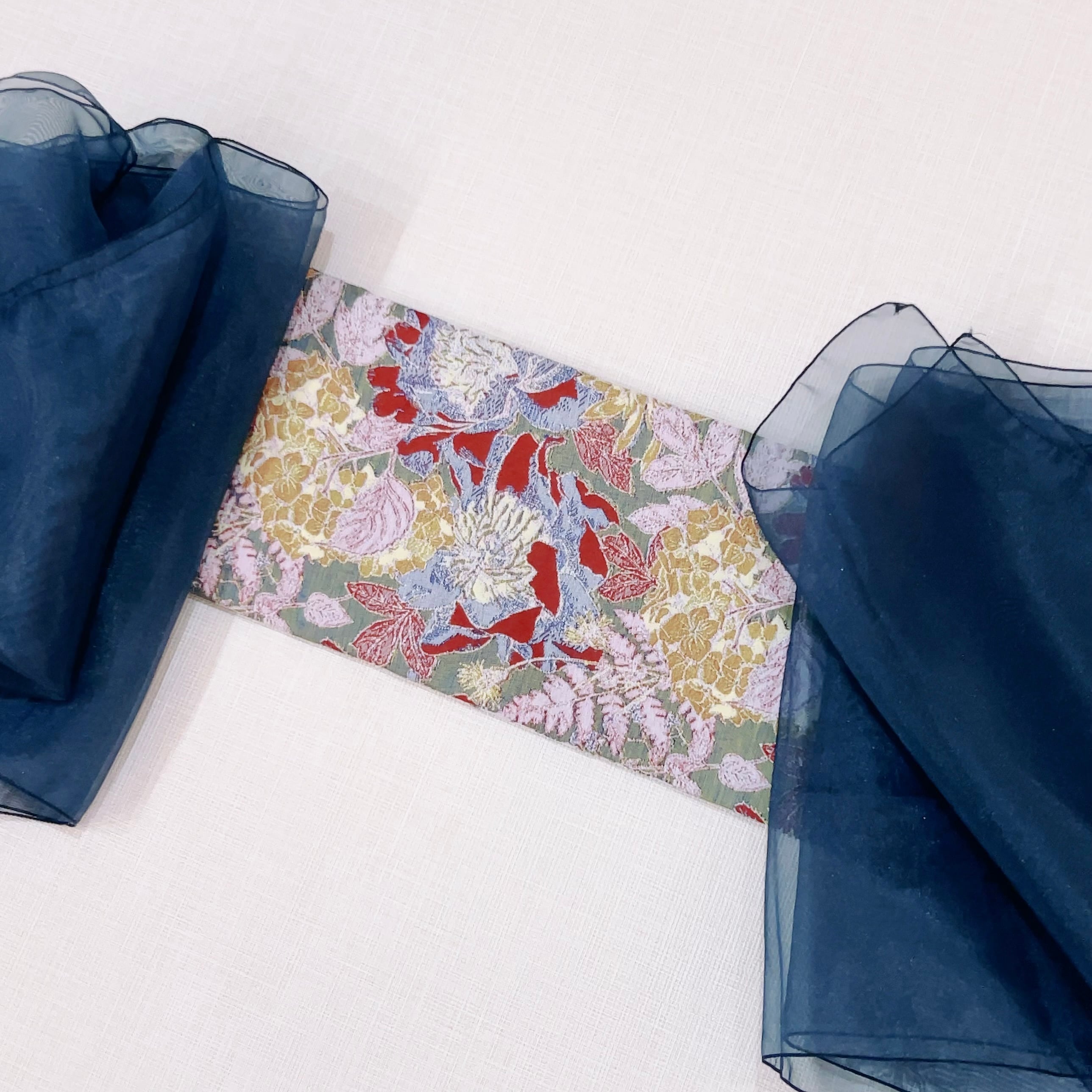 【楽帯】ポワンフローラ ブルー系リボン部分2枚仕立