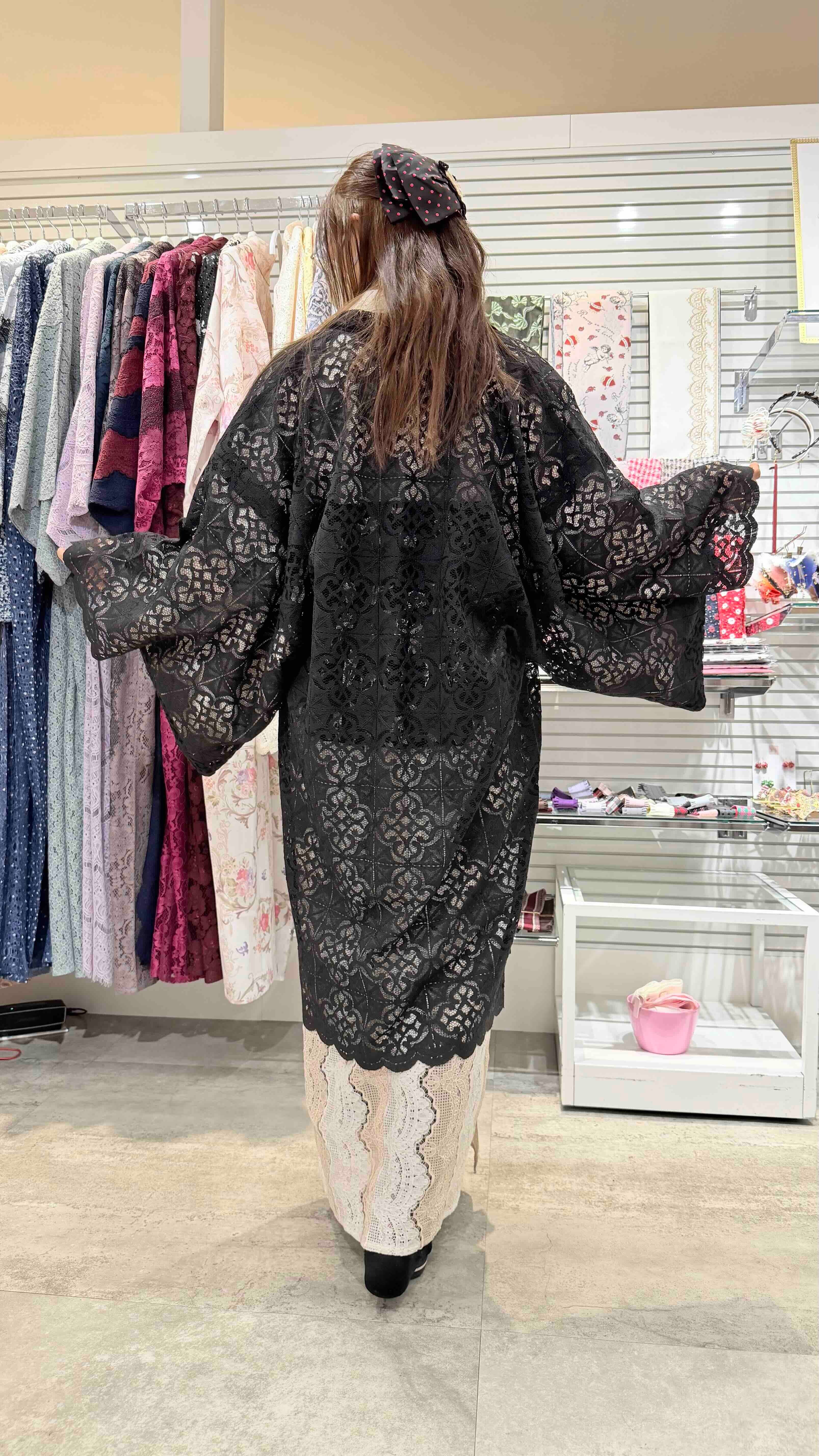 タイルレース羽織り 黒