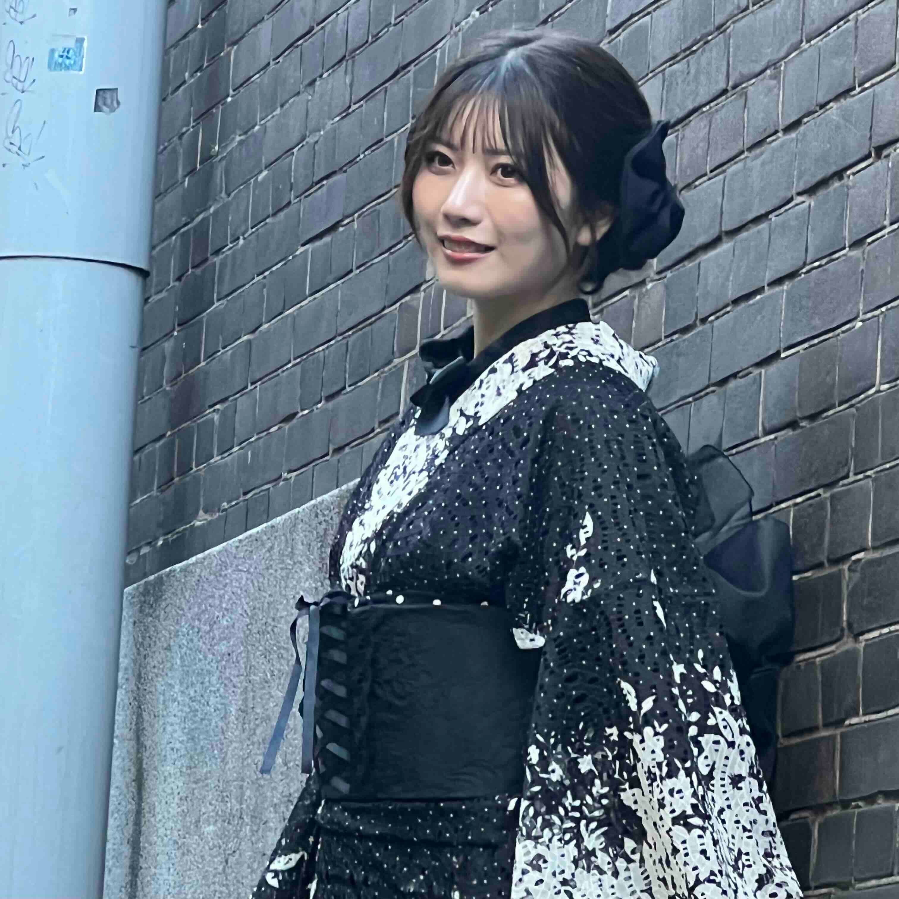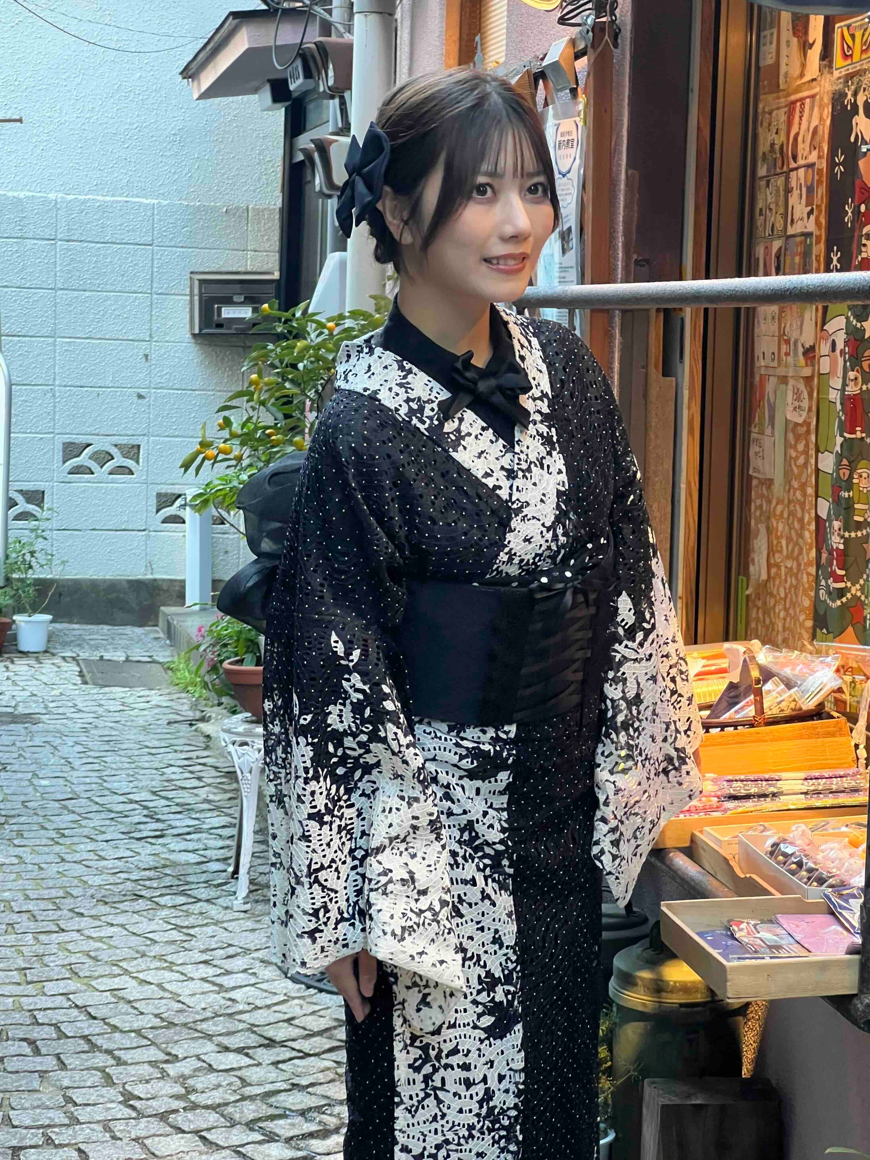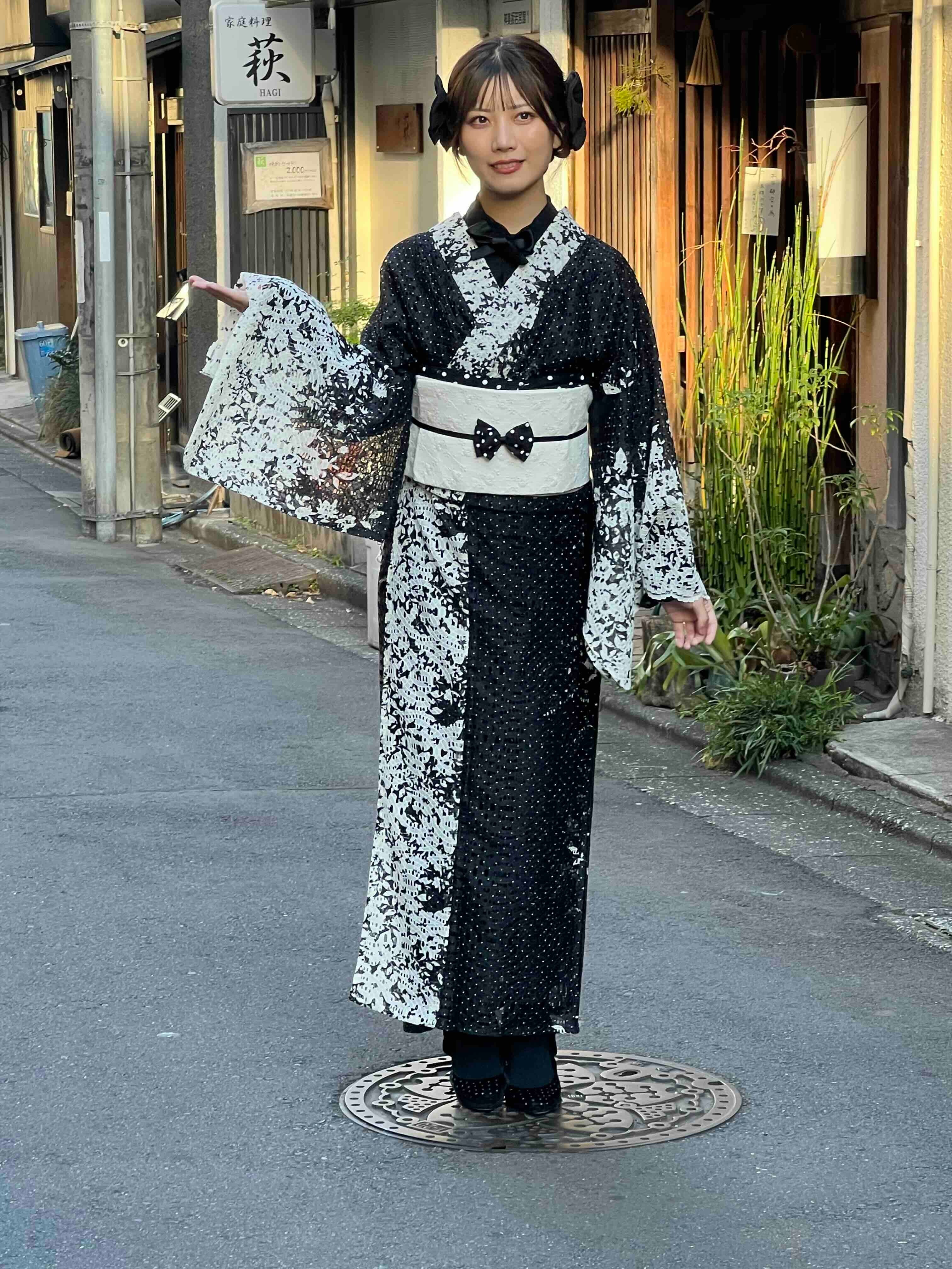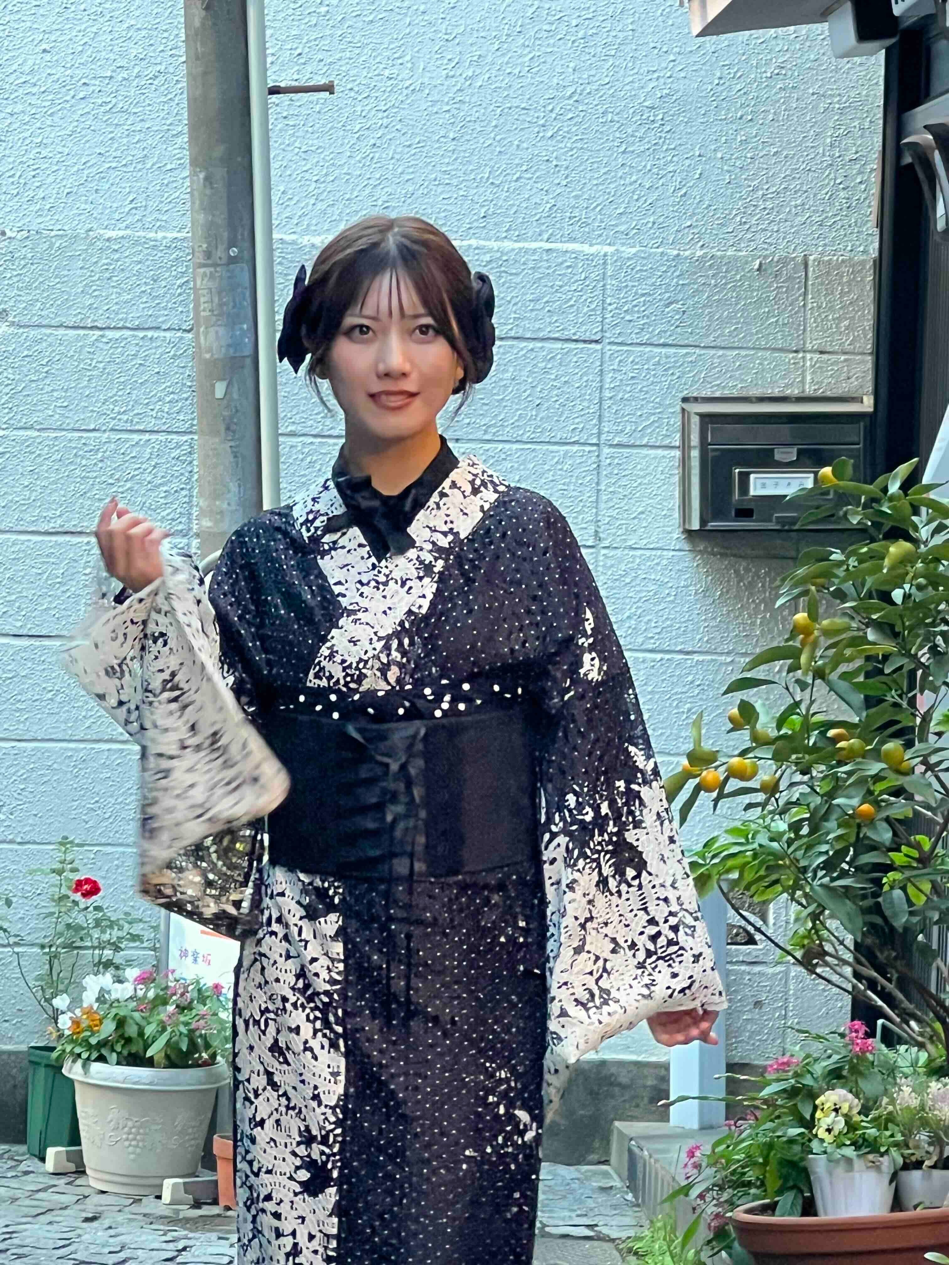 ペタルレース着物【単衣】ブラック