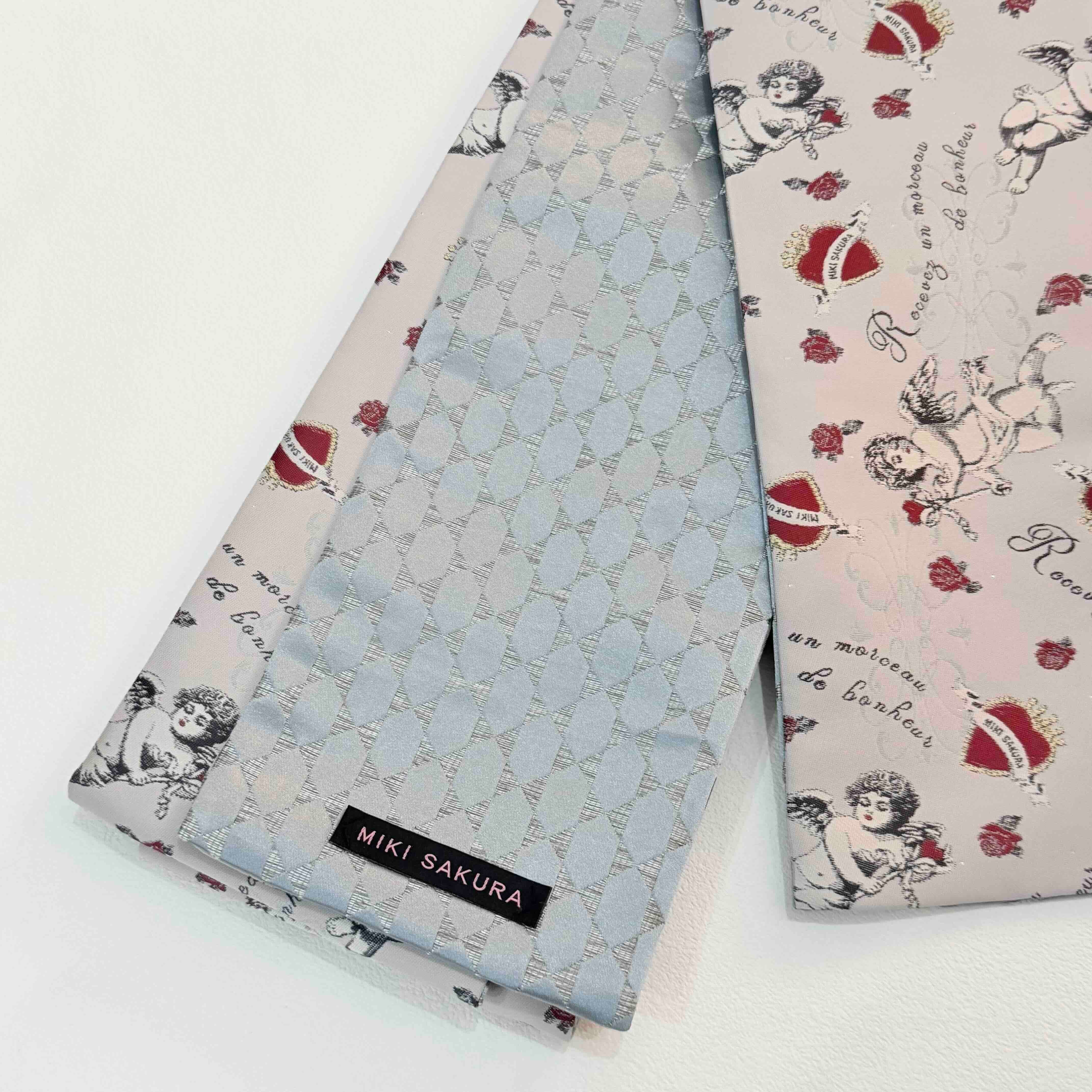 デザイナーが好きな天使とハートを組み合わせた柄の半幅帯です♡