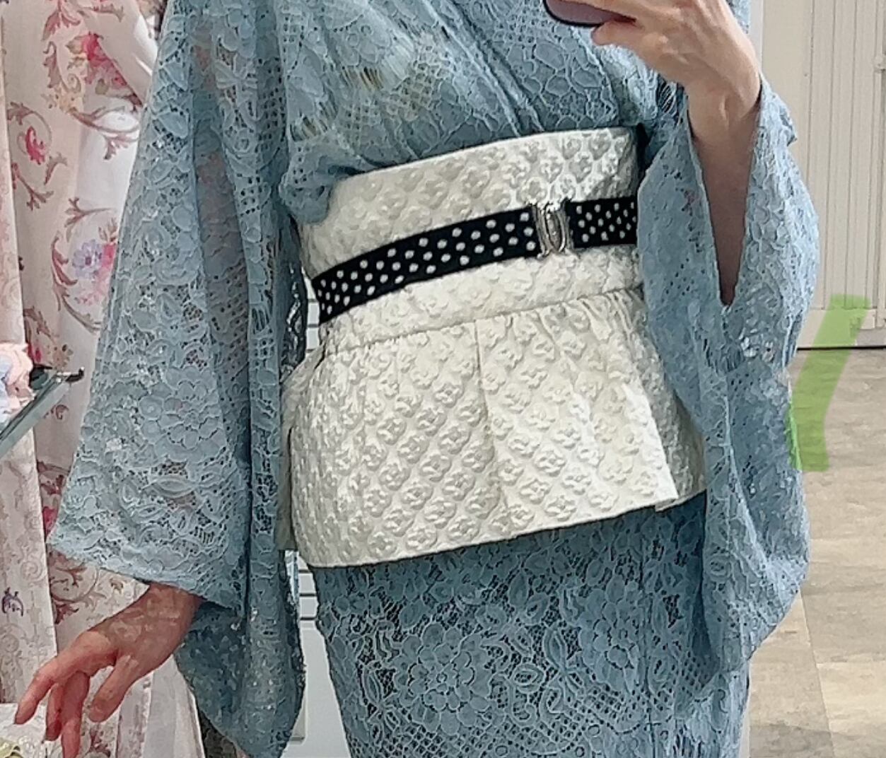 通常の約1/4の長さの帯を巻いてリボンなどで止めるだけの簡単でお洒落帯です♡