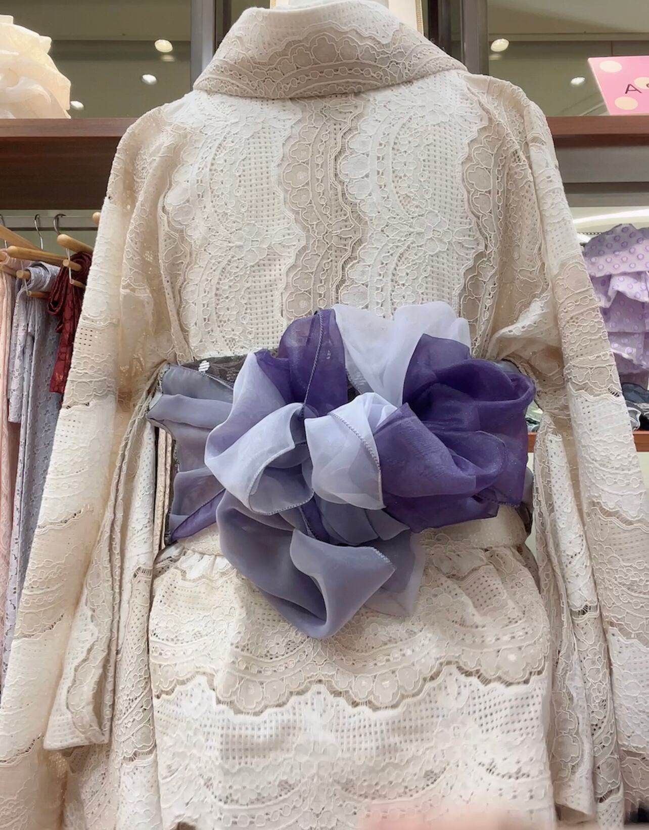 ※ 後ろ側は少し、伊達締めなどの紐が透けて見える場合がございますので、見えても大丈夫な紐などを着付けに使って頂けたらと思います。