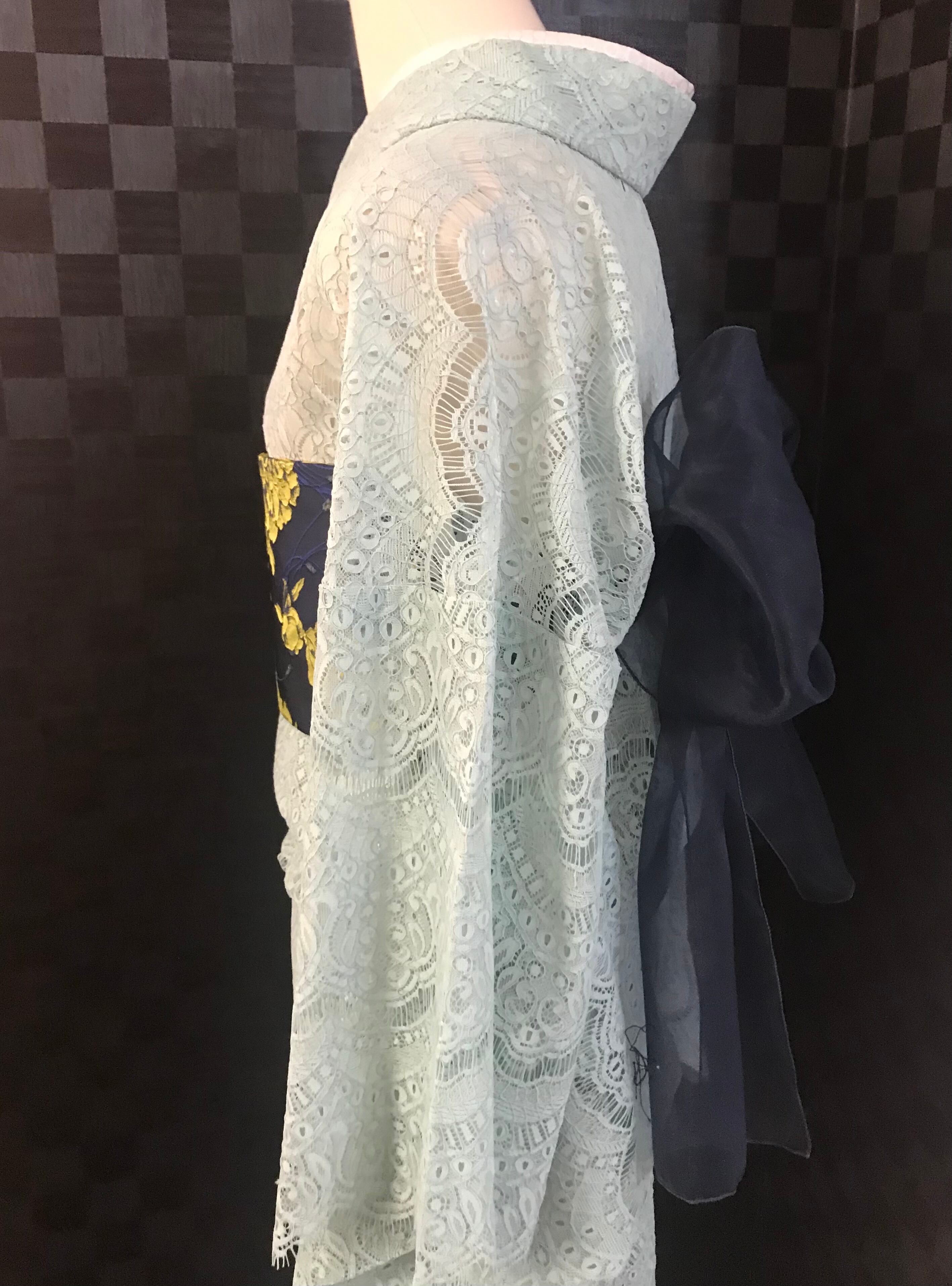 ※ 後ろ側は少し、伊達締めなどの紐が透けて見える場合がございますので、見えても大丈夫な紐などを着付けに使って頂けたらと思います。