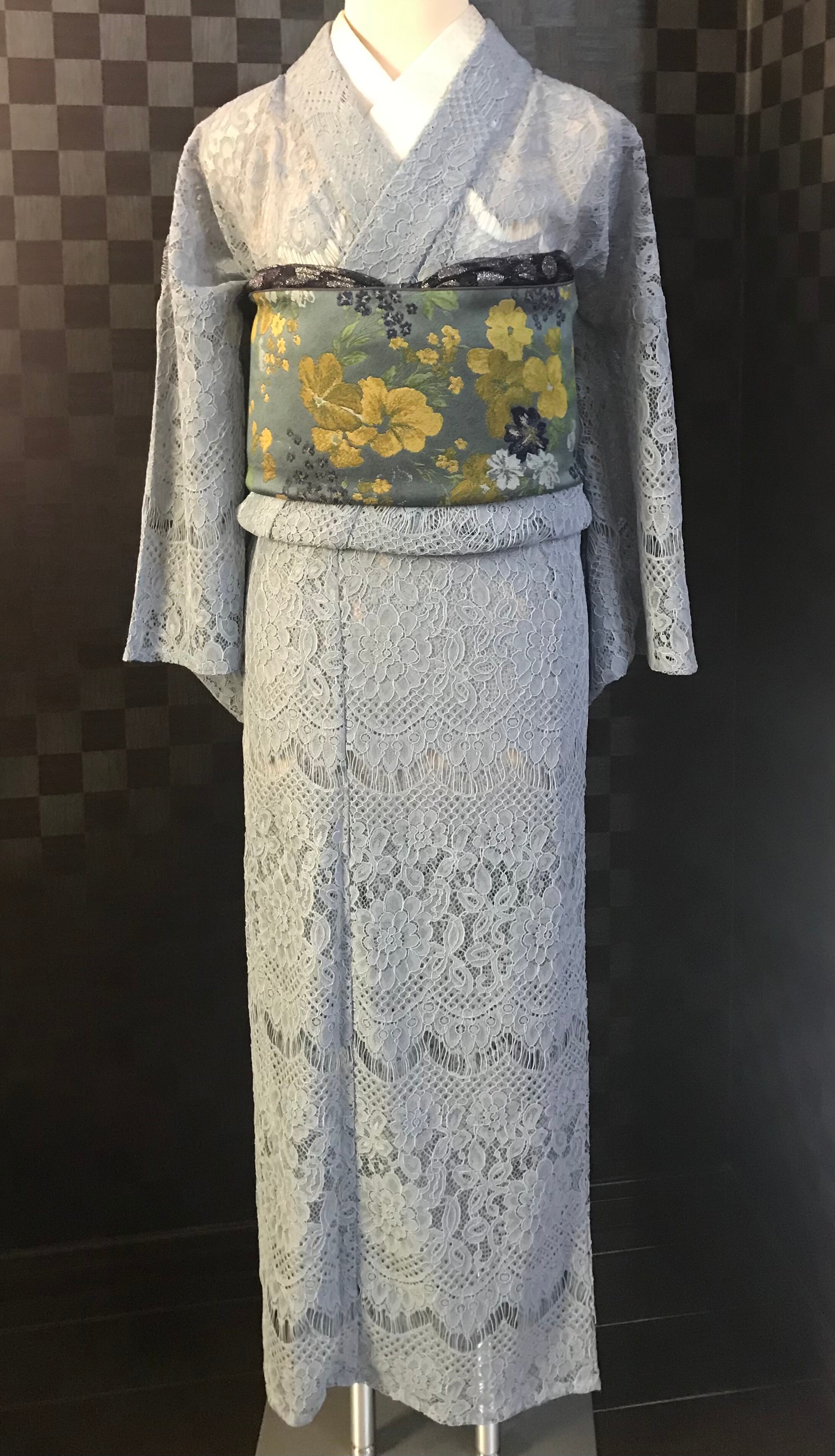 ※こちらのレース着物はデザインの都合上、袖幅がやや狭目に出来ております。長襦袢が出てしまうのが気になる場合は、袖振りを少し縫いとめてお召し頂けたらと思います。