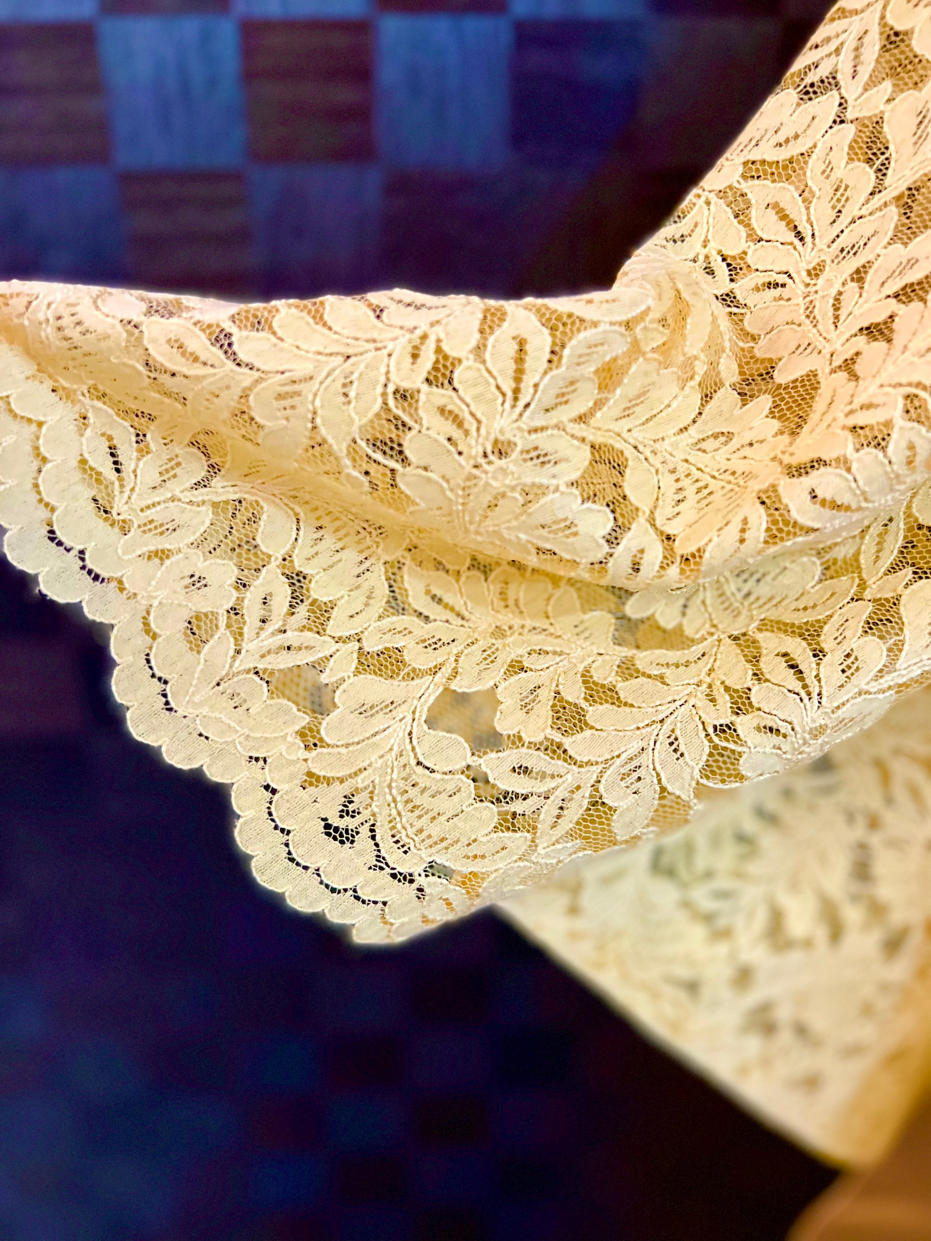 ※こちらのレースは穴が大きく開いている部分は、縫い飛ばしてる部分がございます。