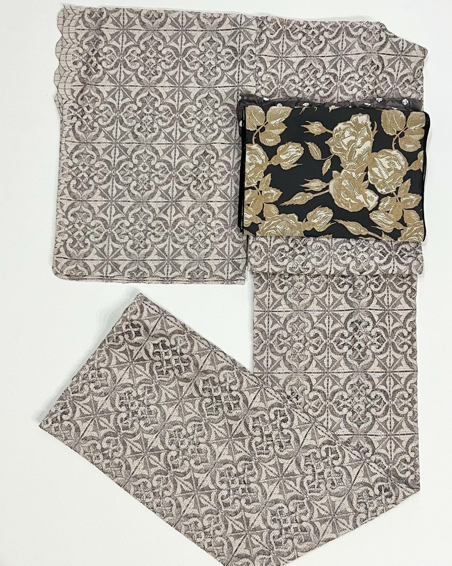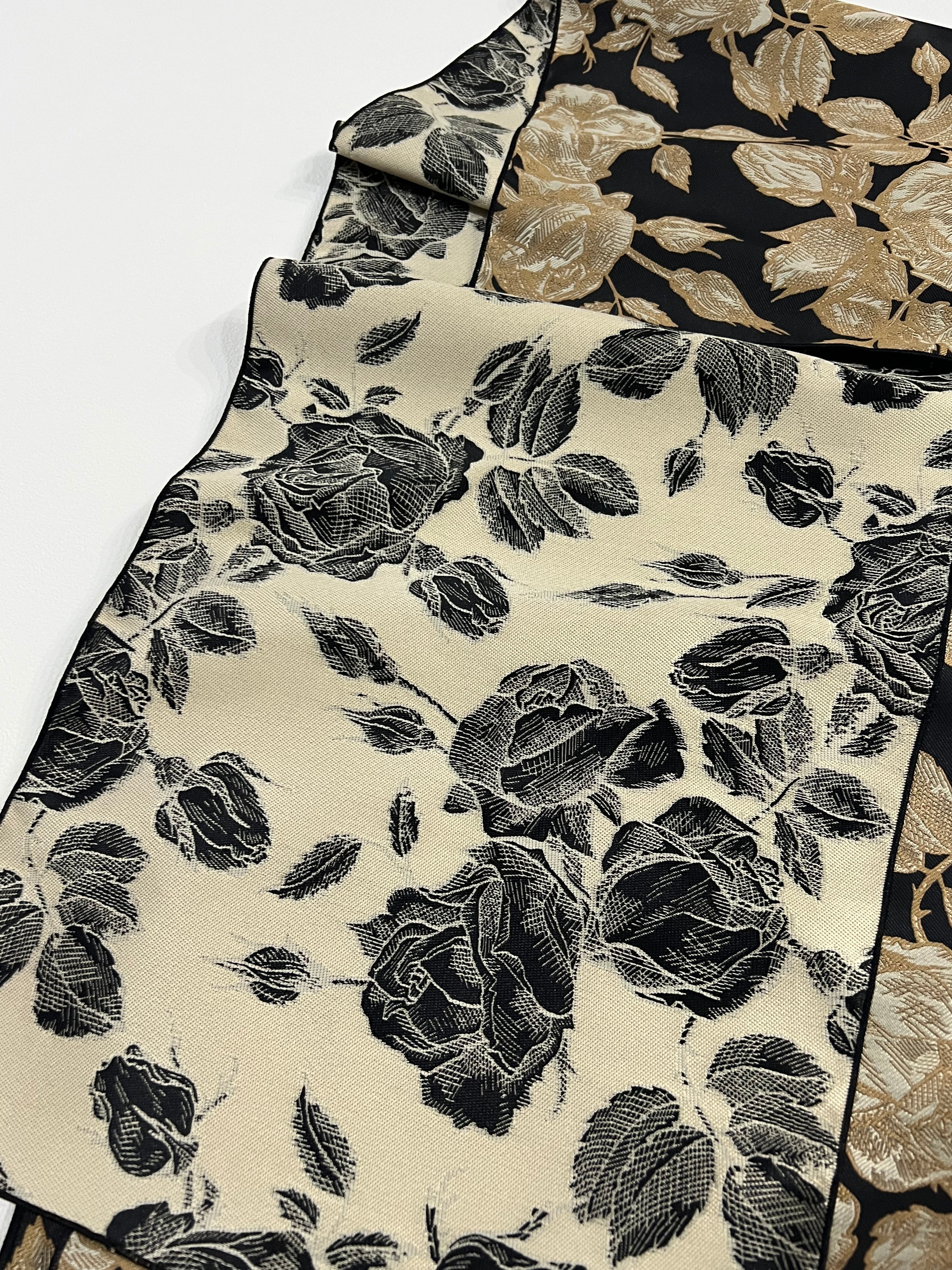 ワントーンローズ兵児帯 黒ベージュ