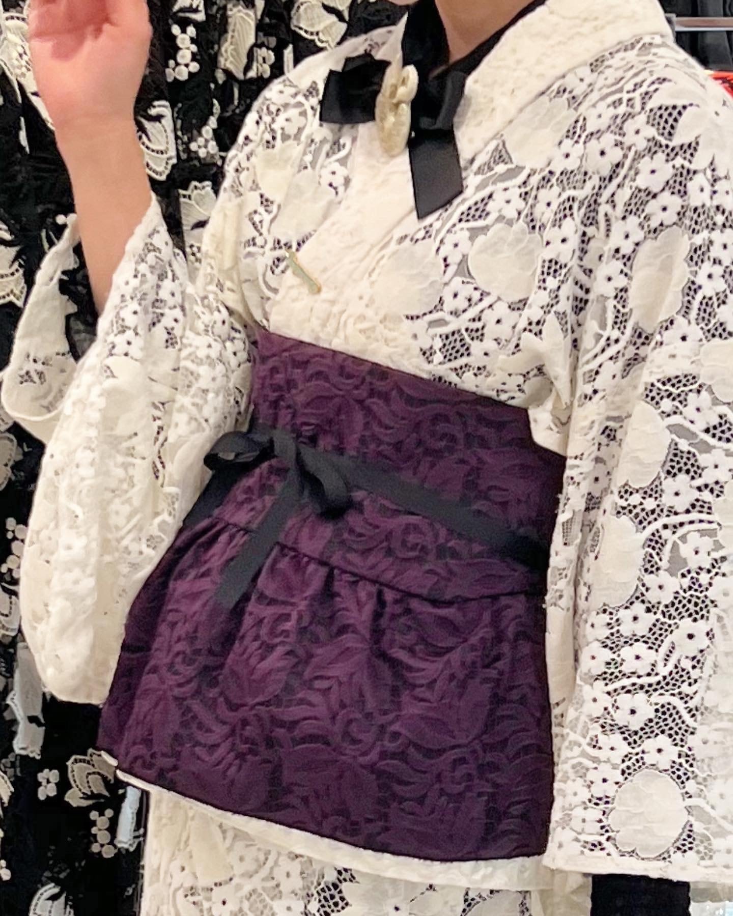 新アイテムの【ドレッシー帯】通常の約1/4の長さの帯を巻いてリボンなどで止めるだけの簡単でお洒落帯です♡