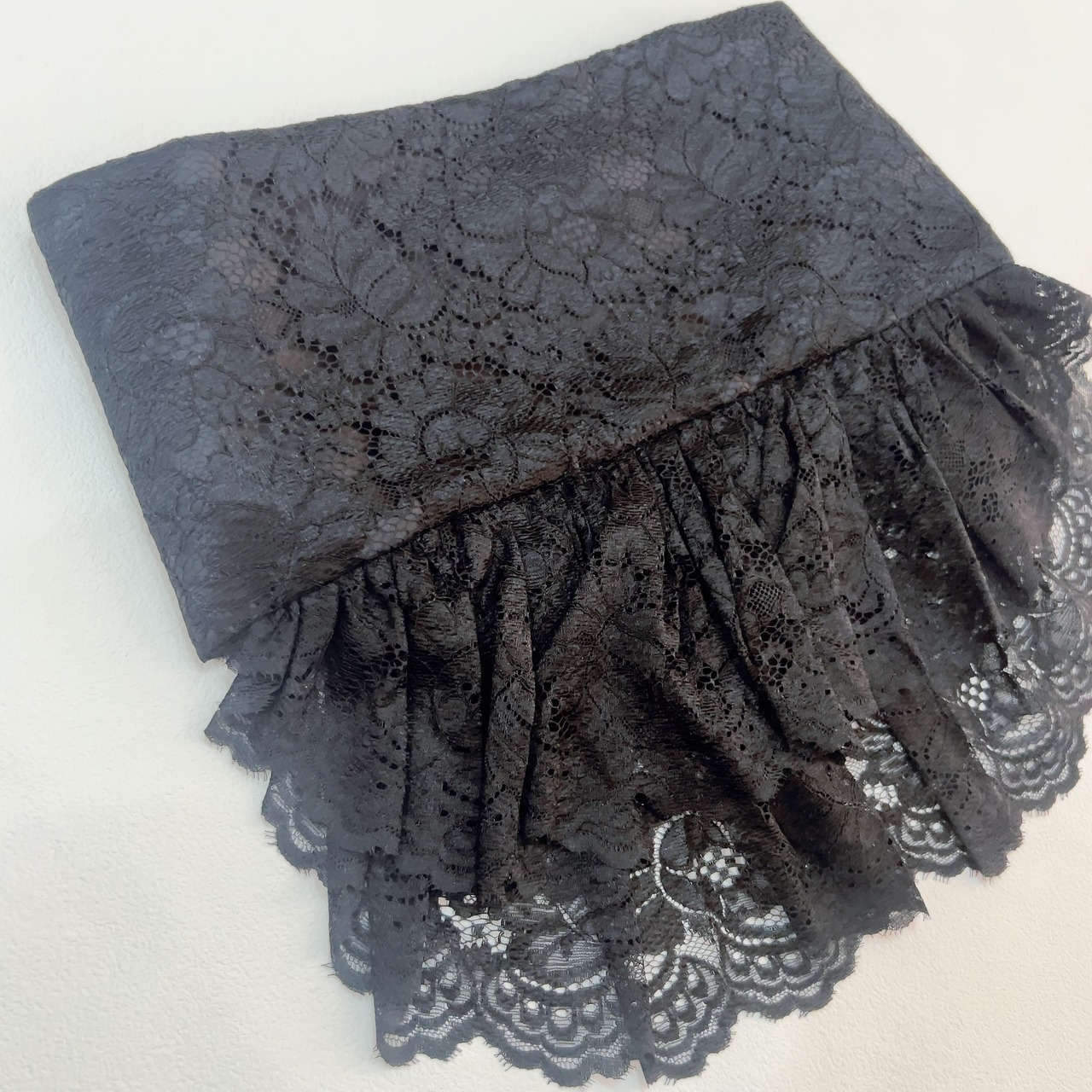 バッスルのように後ろのみレースや生地などを二重にしてボリュームをだしております。